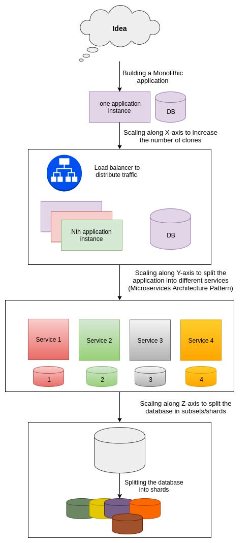 Here's a quick overview of the transition from a monolithic application to a scalable architecture: